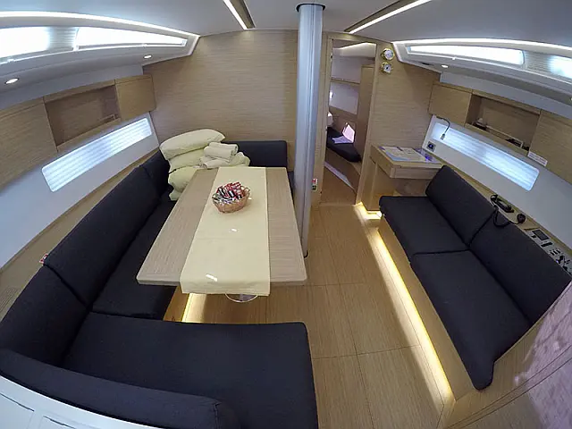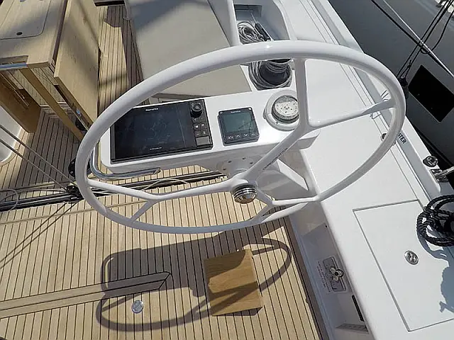 Pilote automatique , Boussole , Compteur de vitesse , Jauge de profondeur , Cartes marines , Station de radio VHF , Anémomètre , GPS plotter dans le cockpit , Propulseur d'étrave