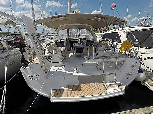 Guindeau électrique , Bimini top , Cockpit table , Bâche coussins , Douche de pont , Echelle de bain , Sprayhood , Moteur hors-bord , Annexe avec moteur hors-bord , Direction de roue (2)