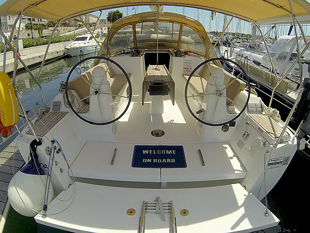 Guindeau électrique , Bimini top , Cockpit table , Bâche coussins , Douche de pont , Echelle de bain , Moteur hors-bord , Annexe avec moteur hors-bord , Direction de roue (2)