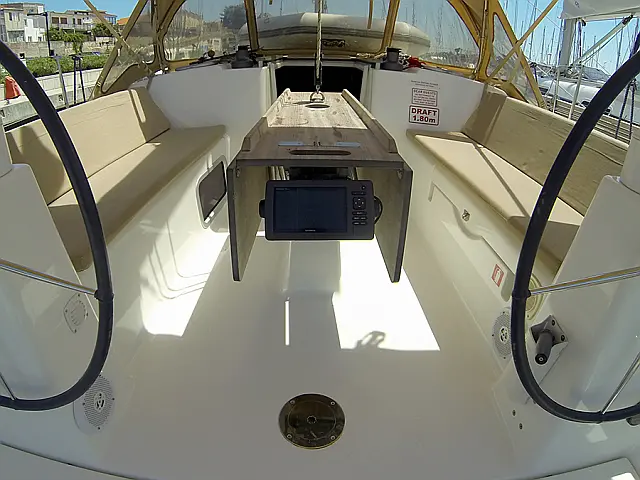 Pilote automatique , Boussole , GPS plotter , Compteur de vitesse , Jauge de profondeur , Cartes marines , Station de radio VHF , Anémomètre , GPS plotter dans le cockpit
