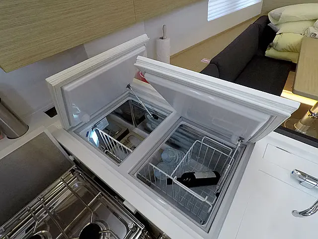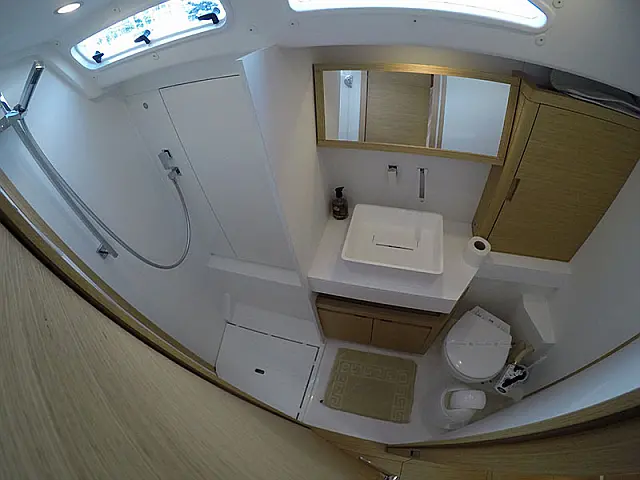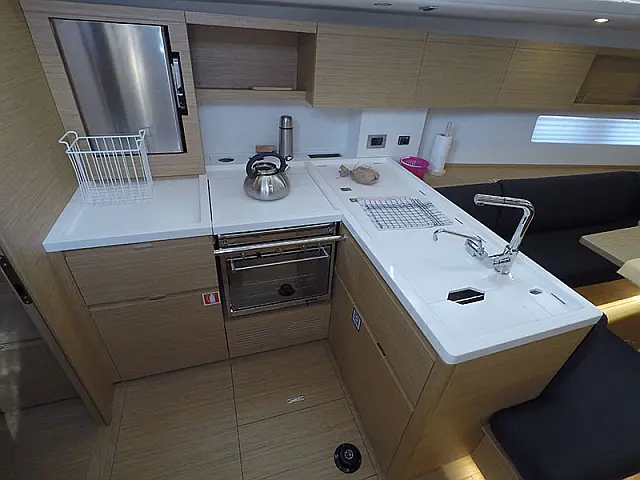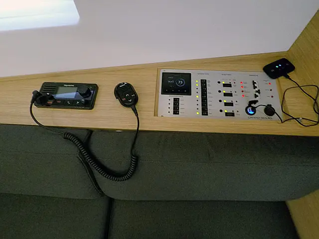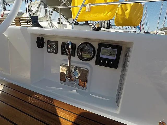 Pilote automatique , Boussole , Compteur de vitesse , Jauge de profondeur , Cartes marines , Station de radio VHF , Anémomètre , GPS plotter dans le cockpit , Propulseur d'étrave