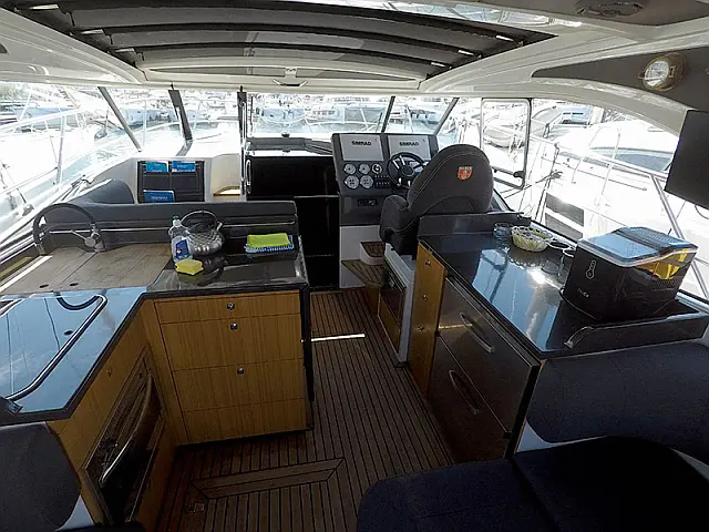 Boussole , GPS plotter , Compteur de vitesse , Jauge de profondeur , Cartes marines , Station de radio VHF , Propulseur d'étrave , Joystick control