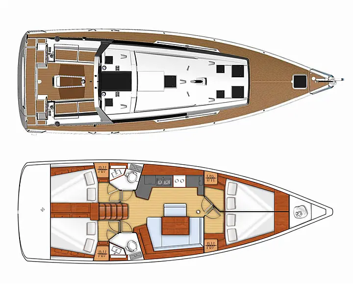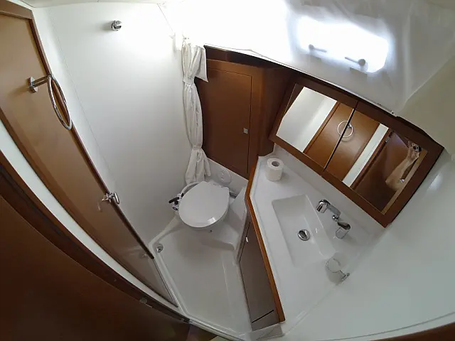 Pilote automatique , Boussole , GPS plotter , Compteur de vitesse , Jauge de profondeur , Cartes marines , Station de radio VHF , Anémomètre , GPS plotter dans le cockpit , Propulseur d'étrave